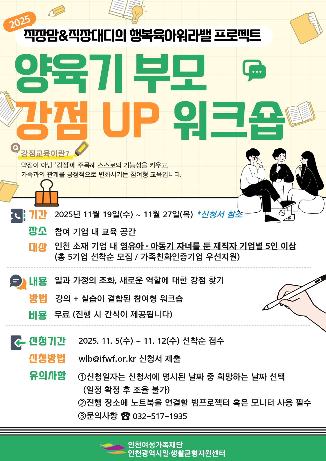 | [일생활균형지원센터] 양육기 부모의 강점UP프로그램 참여 기업 모집 |