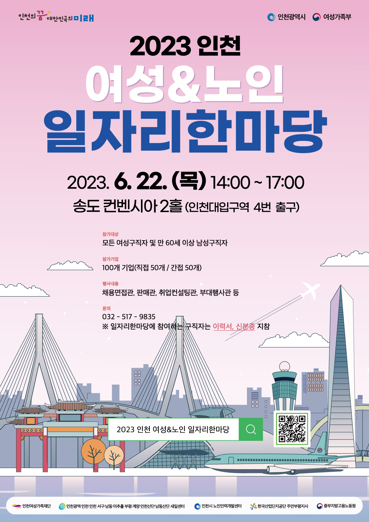 | "2023 인천 여성&노인 일자리한마당" 개최안내(첨부파일100개 구인기업정보 포함) |